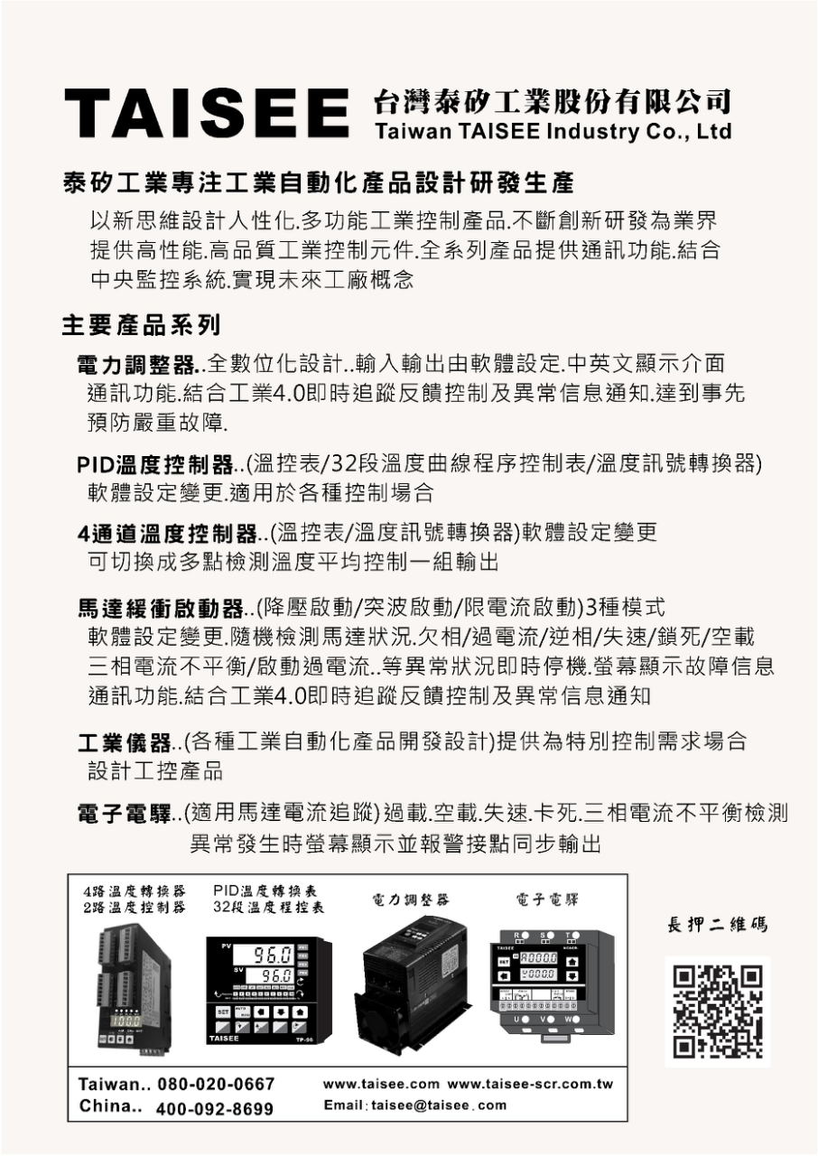 2020年臺北國際自動化工業大展 臺灣泰矽誠摯邀請:參加2020年臺北國際自動化工業大展 臺北南港展覽館:1館1F 編號:I804 2020年 臺北國際自動化工業 展覽會 將于2020年8月19日至8月22日在臺北南港 展覽館 舉行, 屆時 ,我司 將攜 特