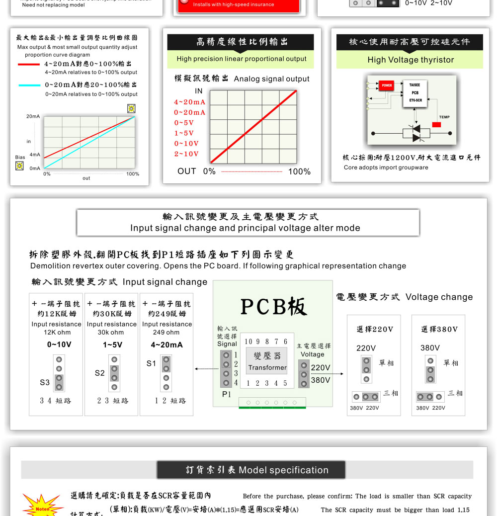 輸入模式:可變更/硬件方式變更 4~20mA/1~5V/0~10V 輸出模式:不可變更 零位.相位