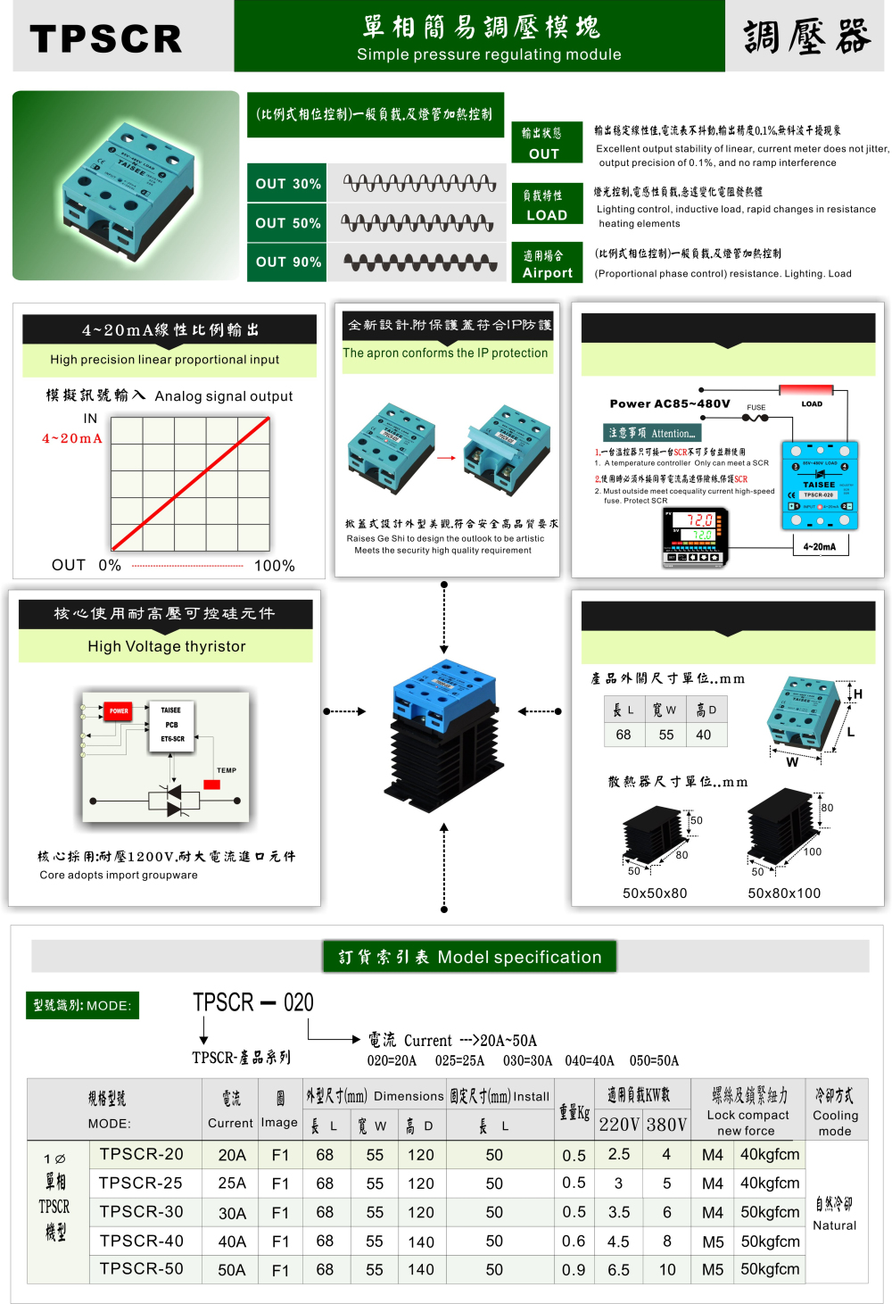 輸入模式: 4~20mA/0~10V 輸出模式:相位 簡易SSR配線.SCR控制效果