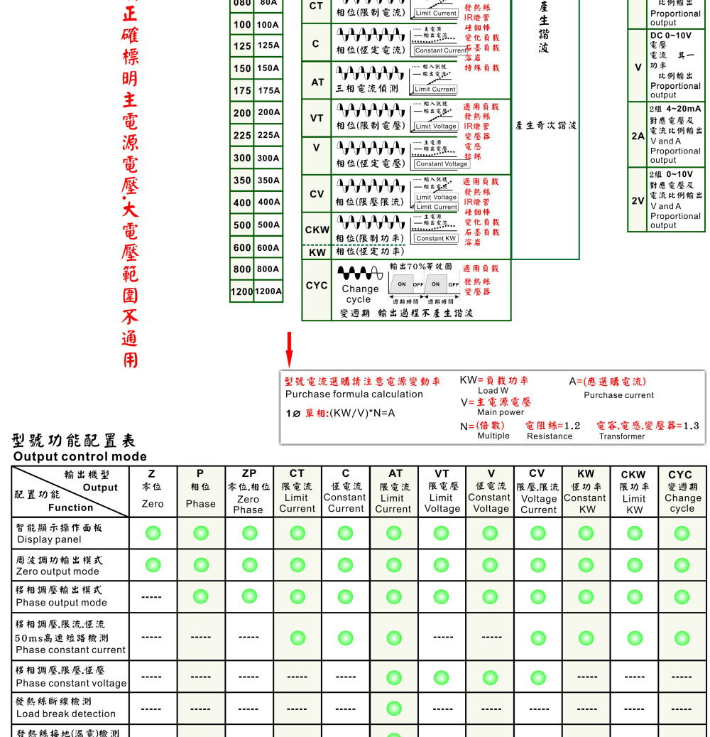 8種輸入模式選擇 輸出模式:零位.相位.限流.限壓.恒流.恒壓.周期 RS485通訊功能